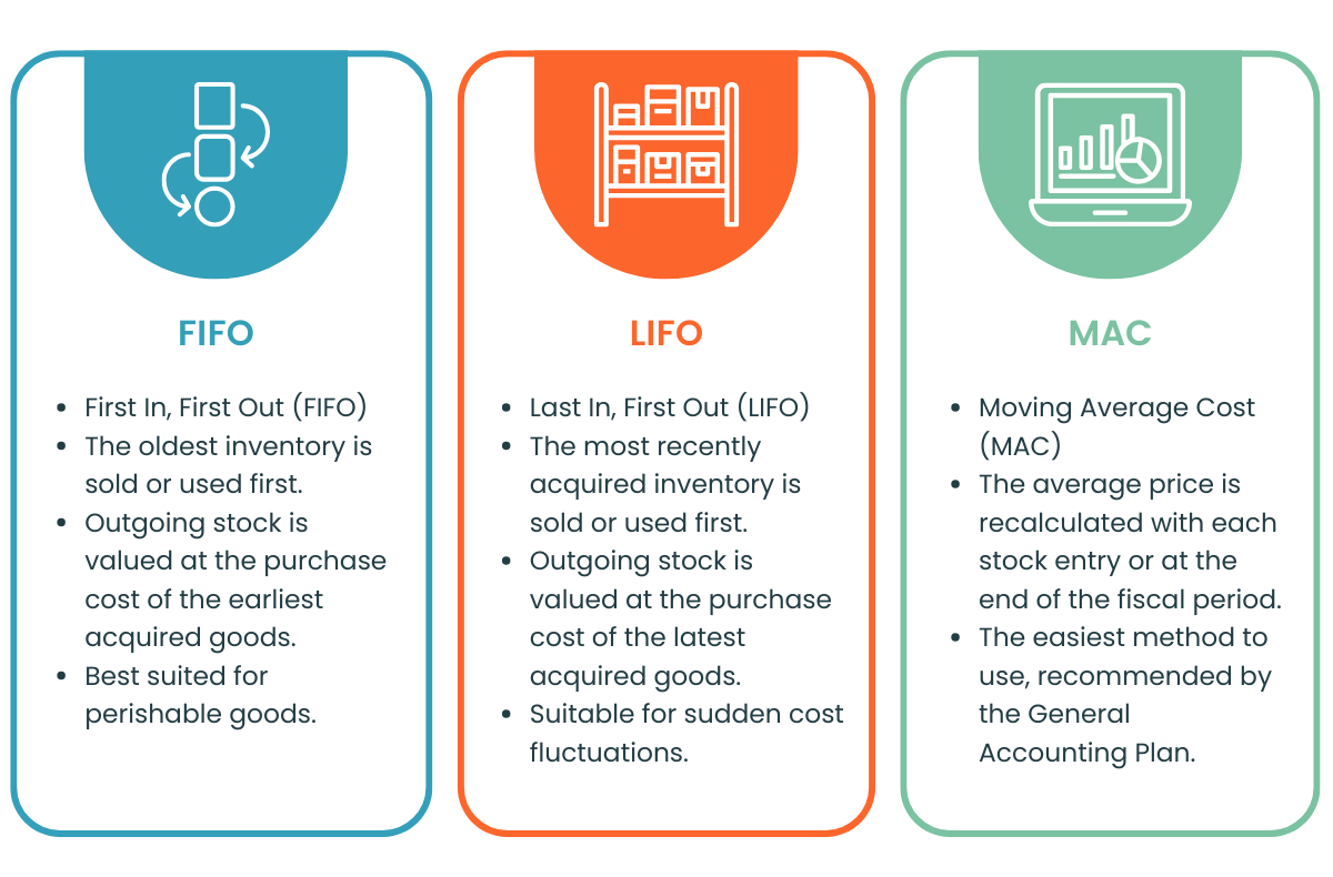 In Stockpit, you can use the Moving Average Cost (MAC), the First-In-First-Out (FIFO) method, and the Last-In-First-Out (LIFO) method to calculate the cost of a product and stock valuation.